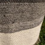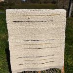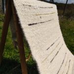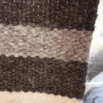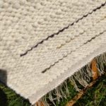Les tapis sont filés et tissés main. Le filage se fait sur un rouet Ashford inspiré du travail des indiennes Cowichan sur l’île de Vancouver. Le fil est épais et irrégulier ce qui donne le moelleux et le relief au tapis. Chaque pièce est unique, fabriqué avec soin en maîtrisant les étapes du mouton au produit final. Les motifs sont inspirés de la nature qui nous entoure, du travail qui nous anime et de notre amitié des unes pour les autres. Les couleurs naturelles blanc/beige, gris et noir sont dominantes. Mais de temps à autre, une touche de couleur se glisse dans nos tapis issus de teintures végétales du plus bel effet.